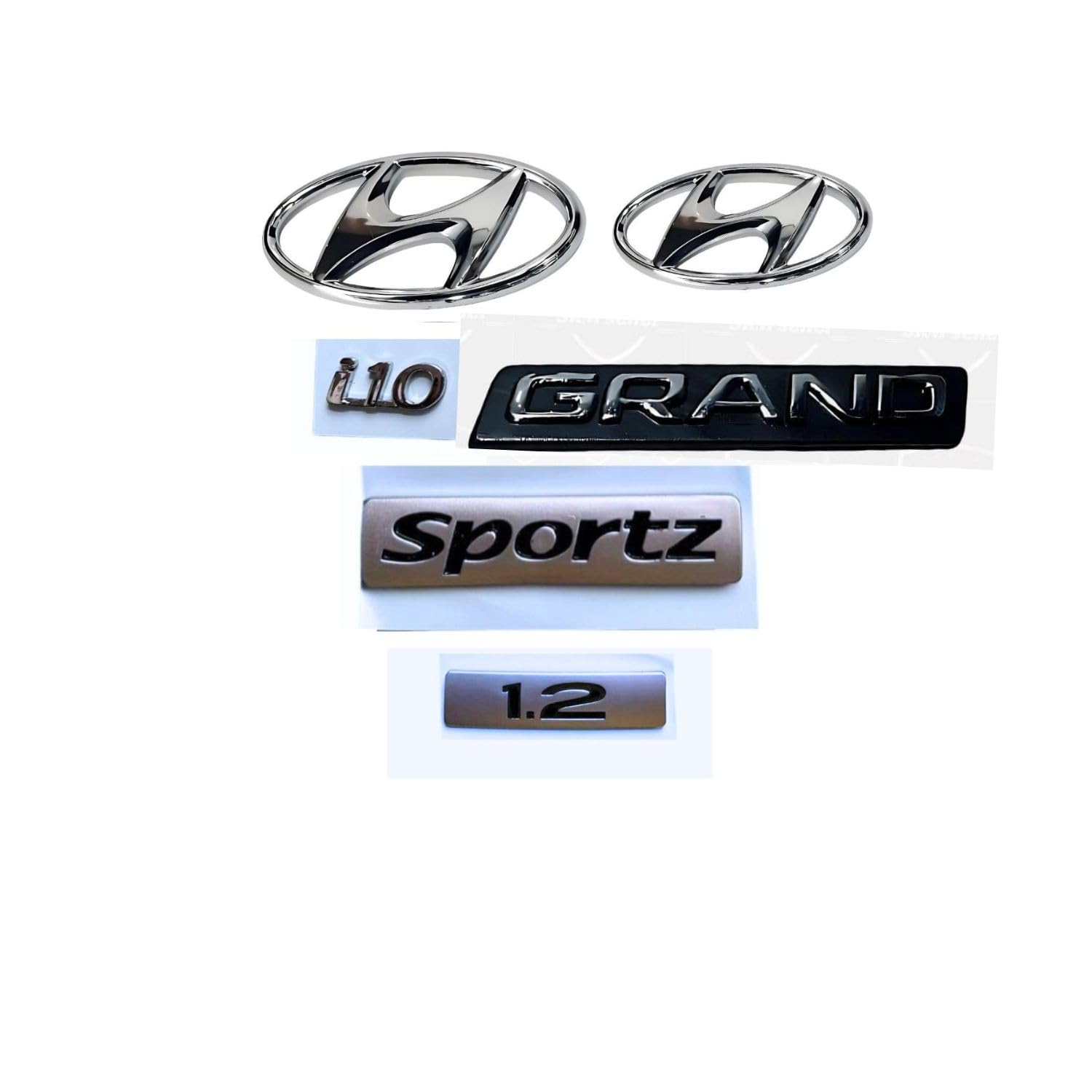 SKM Car Emblem Chrome Finish i10 Grand Sportz 1.2 Front and Rear Logo Badge Nameplate Set