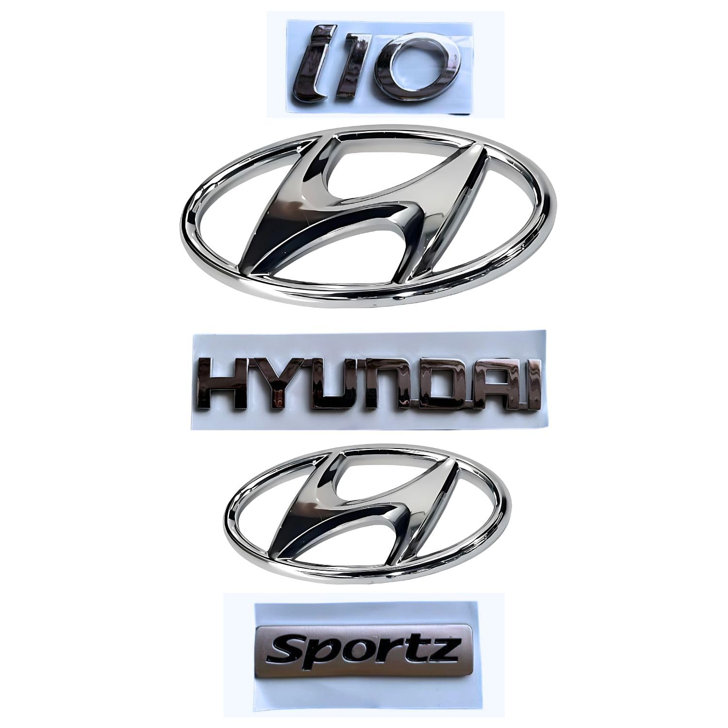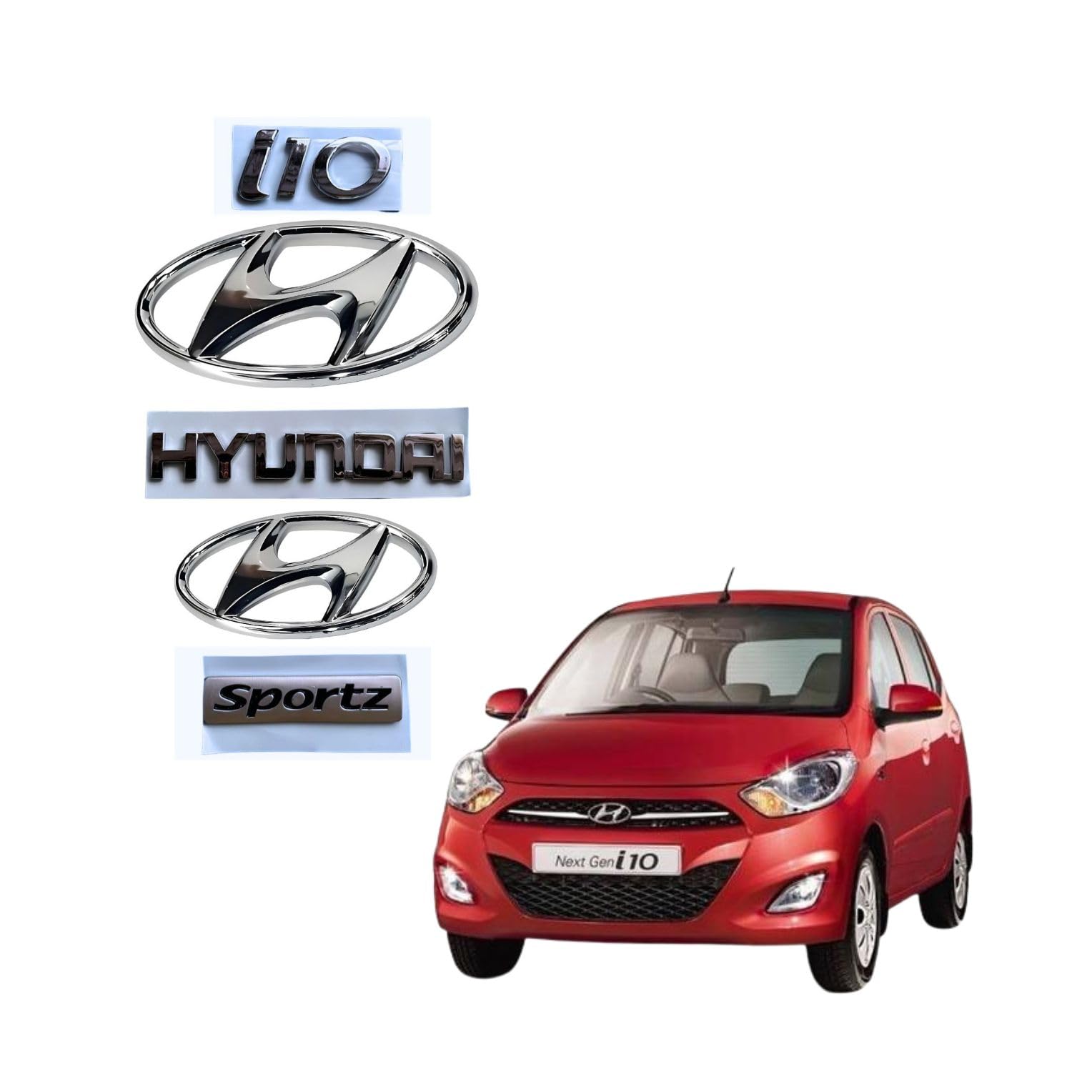 SKM Car Emblem Chrome i10 Sportz Front & Rear Logo Nameplate Badge