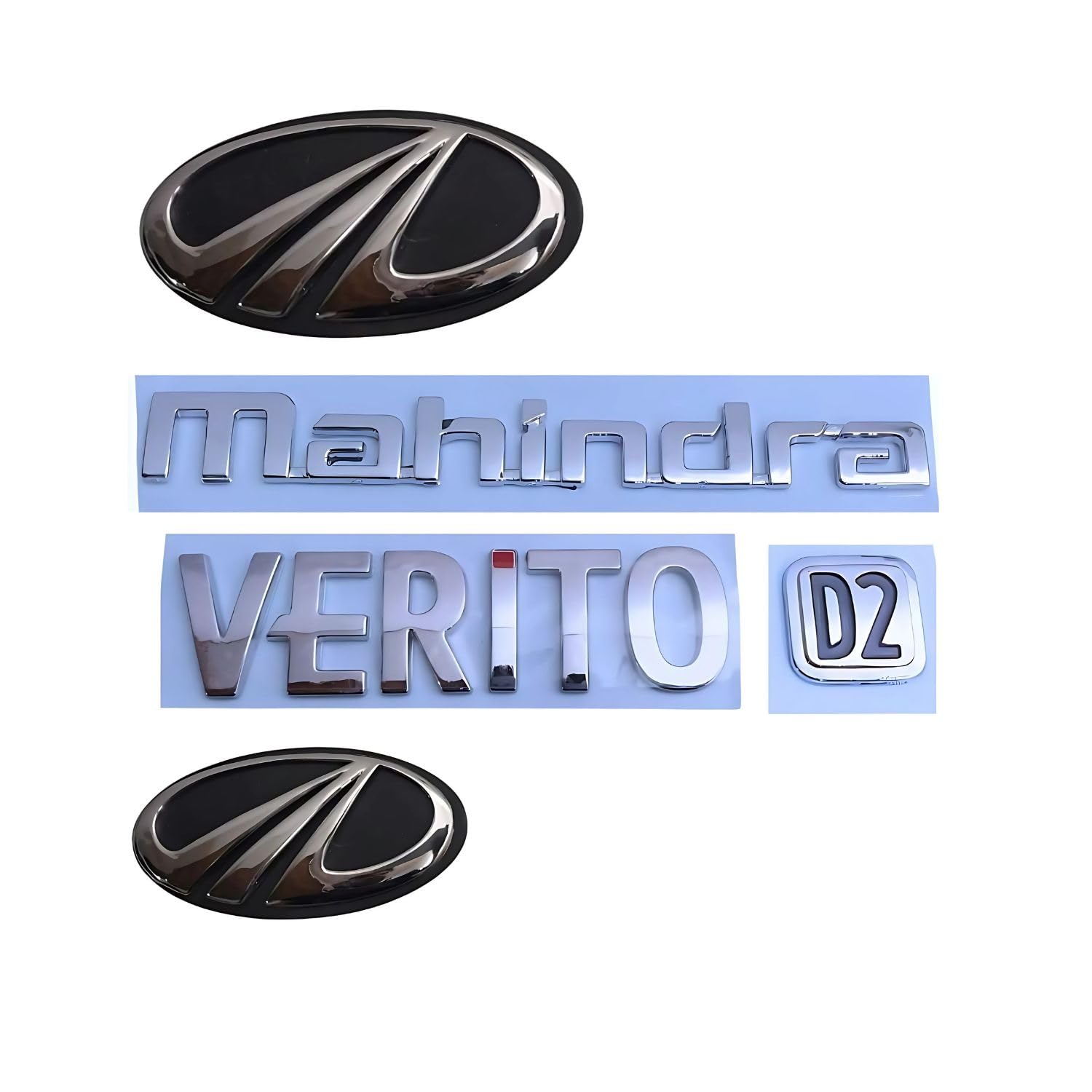 SKM Car Verito D2 Logo Decal Kit Chrome Letter Front Rear Badge 3D Metal Nameplate Set Black and Silver